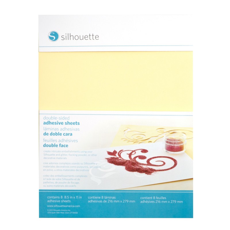 Utilice el papel adhesivo de doble cara con purpurina, polvo de embossing, entre otros materiales decorativos, para crear diseños con lineas fantasticas. De forma sencilla, quite la espalda y pegue la hoja a la superficie. Después, quite la parte delantera para exponer el adhesivo frontal. La parte trasera mantiene el recorte seguro y la parte delantera mantiene los materiales, como purpurina, seguros por adelantado.